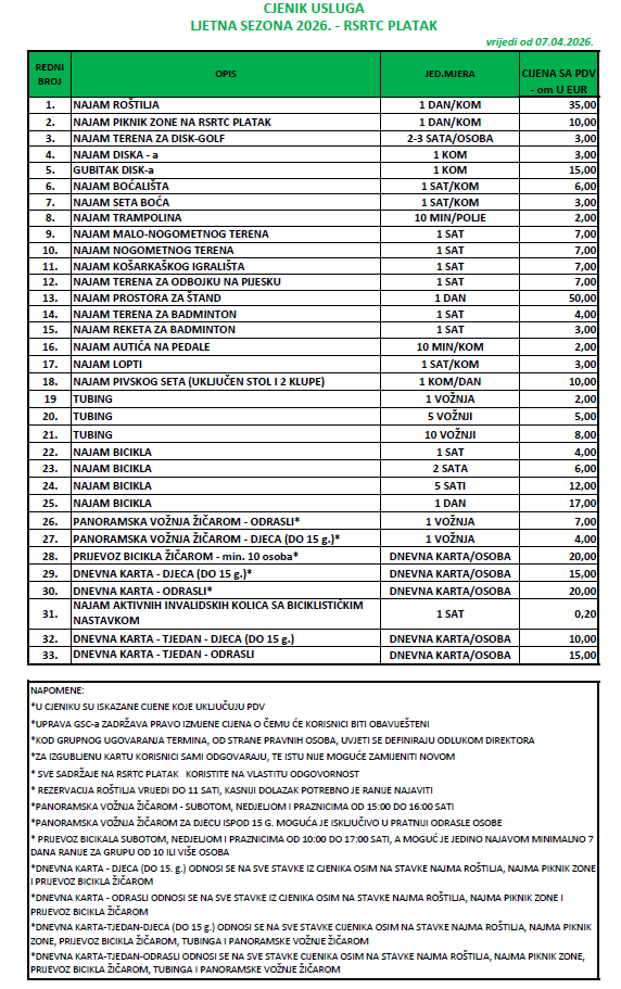 Cjenik ljeto